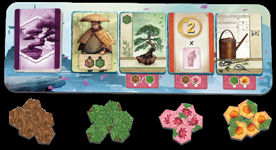 In jouw beurt voer je een van deze twee acties uit: mediteren of cultiveren. Als je mediteert, kies je een van de openliggende kaarten op het bord en neem je deze, samen met eventuele bonsai-tegels die eronder staan afgebeeld.