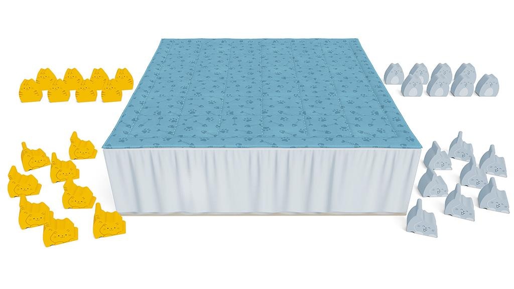 Elke keer dat je een kitten op het bed legt, gebeurt de “boop”. Dat wil zeggen dat de kitten elke ander kitten op het bord één vakje verder duwt. Zet drie kittens op een rij om ze in katten te veranderen… en zorg dan dat je drie katten op een rij krijgt om te winnen.