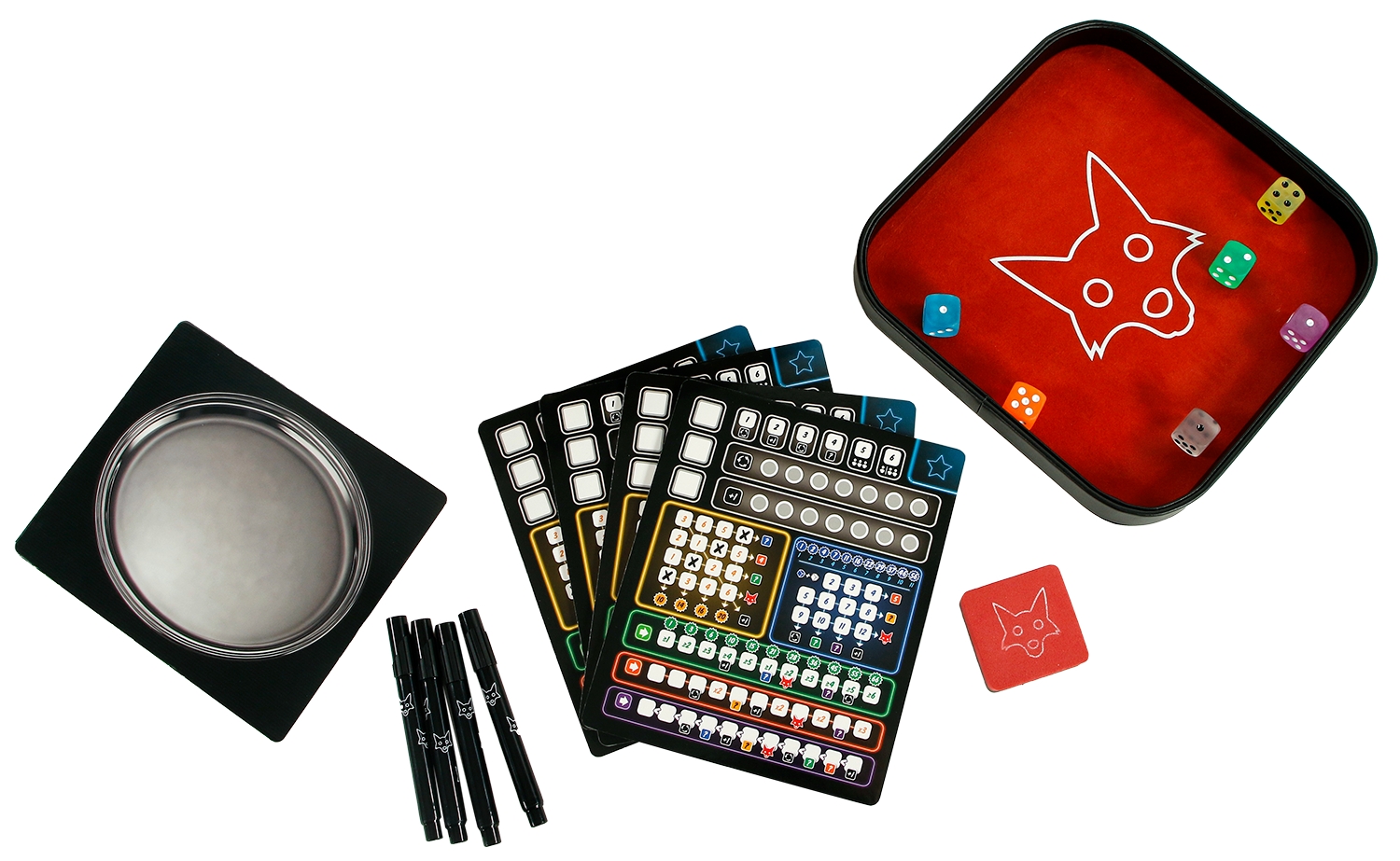 • Met onder andere een luxe dobbelbak en uitwisbare tableaus