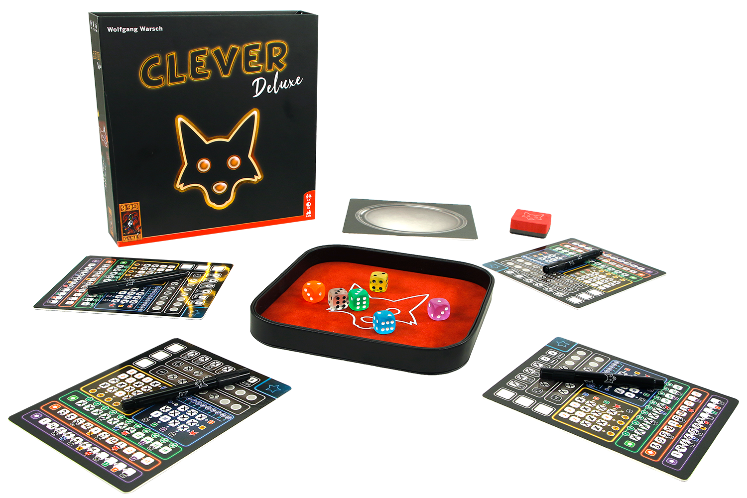 Luxe editie van het populaire dobbelspel Clever! Kies je dobbelstenen slim. Alleen dan kun je kettingreacties activeren. In dit dobbelspel zijn alle spelers voortdurend bezig. Daardoor is het tot het einde razend spannend! Deze bijzondere editie heeft een luxe dobbelbak, uitwisbare tableaus, unieke, grotere dobbelstenen en een wisser, waardoor je geen scoreblokken nodig hebt. Met uitdagende mixed-variant!