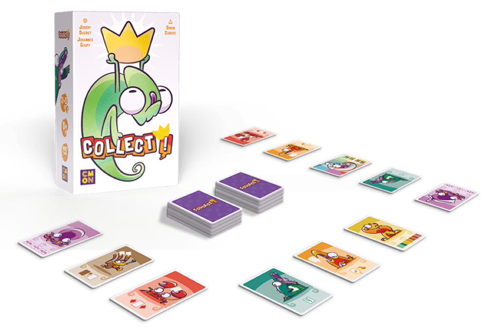 Collect! is snel te leren, duurt ongeveer 15 minuten en zit boordevol verrassende wendingen. Met 8 unieke dieren en een hoge herspeelbaarheid is het een kleurrijk kaartspel dat je gemakkelijk overal mee naartoe kunt nemen en waar je niet meer mee kunt stoppen.
