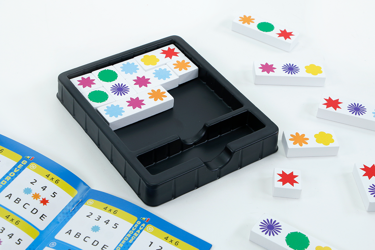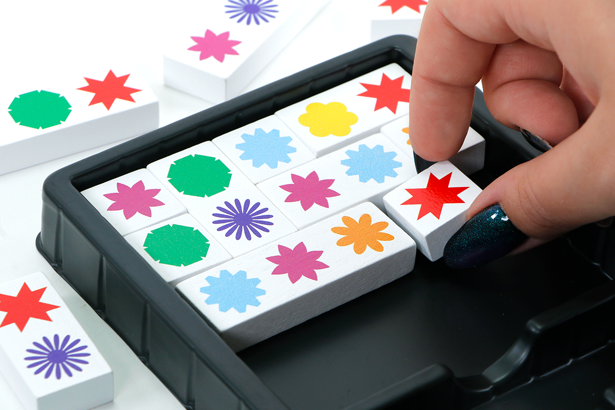 eg de stenen slim neer om het juiste raster te creëren, maar let erop dat elke vorm horizontaal en verticaal maar één keer voor mag komen! Dit kleurrijke puzzelspel voor solospelers stelt je ruimtelijk inzicht en denkvermogen op de proef. Dankzij de compacte verpakking en korte spelregels kun je direct beginnen met puzzelen!