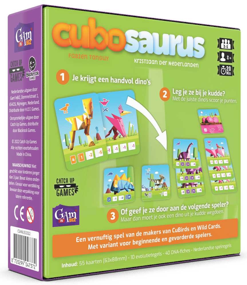 CuboSaurus is een vlot en leuk spel voor het hele gezin met in de hoofdrol voor iedereen herkenbare dinosaurussen. De keus waar spelers elke beurt voor staan – kaarten houden of doorgeven – maakt CuboSaurus voor veel spelers een unieke uitdaging.