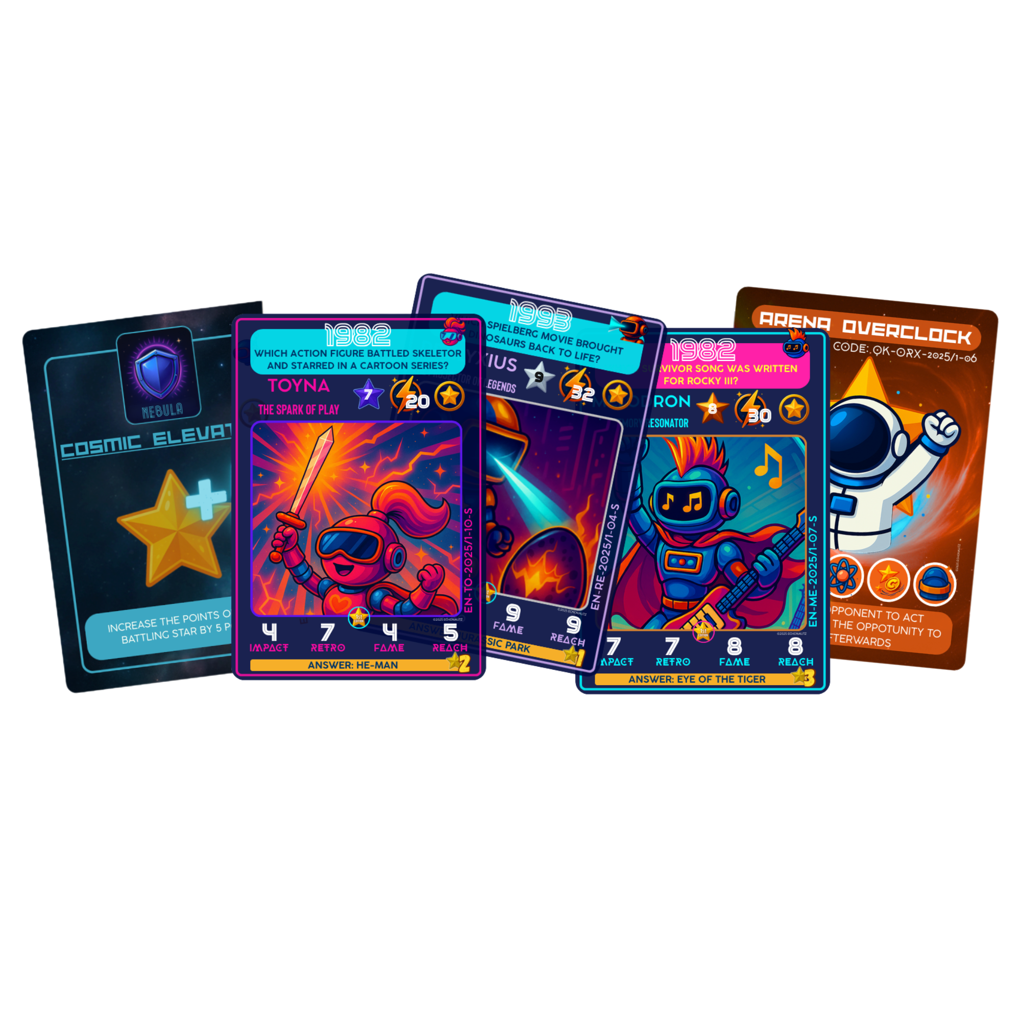 Echonautz: Legacy of Stars is een tactisch sci-fi kaartspel voor 2 spelers waarin je strijdt om het behoud van menselijke herinneringen. Als tijdreizende Echonaut zet je unieke karakters en actiekaarten in om je tegenstander te verslaan op pijlers als Impact en Fame. Win drie ‘Cosmic Echoes’ om het universum te redden van de vergetelheid. Een vlot, strategisch duel met prachtige retro-futuristische artwork en diepgaande gameplay.