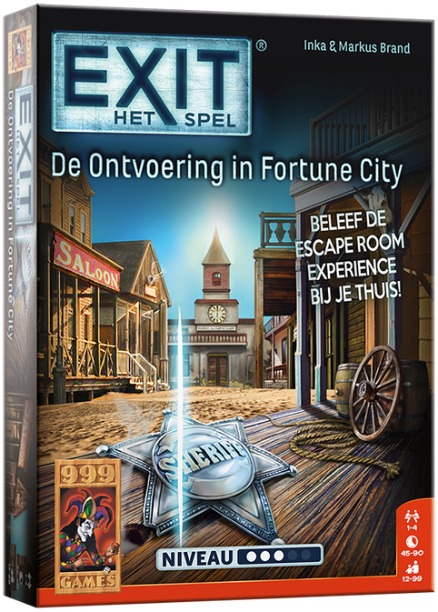 In EXIT: De Ontvoering in Fortune City moet je tal van puzzels oplossen. Net als bij alle andere EXIT-delen speelt ook hier de draaischijf een centrale rol. Door aan de hand van oplossingen van de raadsels codes te vinden en deze op de draaischijf in te voeren, vind je de volgende stappen van dit spannende avontuur. In deze editie moet je naast het oplossen van raadsels ook de gegeven aanwijzingen logisch interpreteren om de ontvoerder te vinden. EXIT: De Ontvoering in Fortune City is maar één keer speelbaar, omdat het speelmateriaal moet worden beschreven, gevouwen of afgescheurd. Maar net als in een “echte” escape room garanderen we een zeer intense puzzel- en speelervaring!