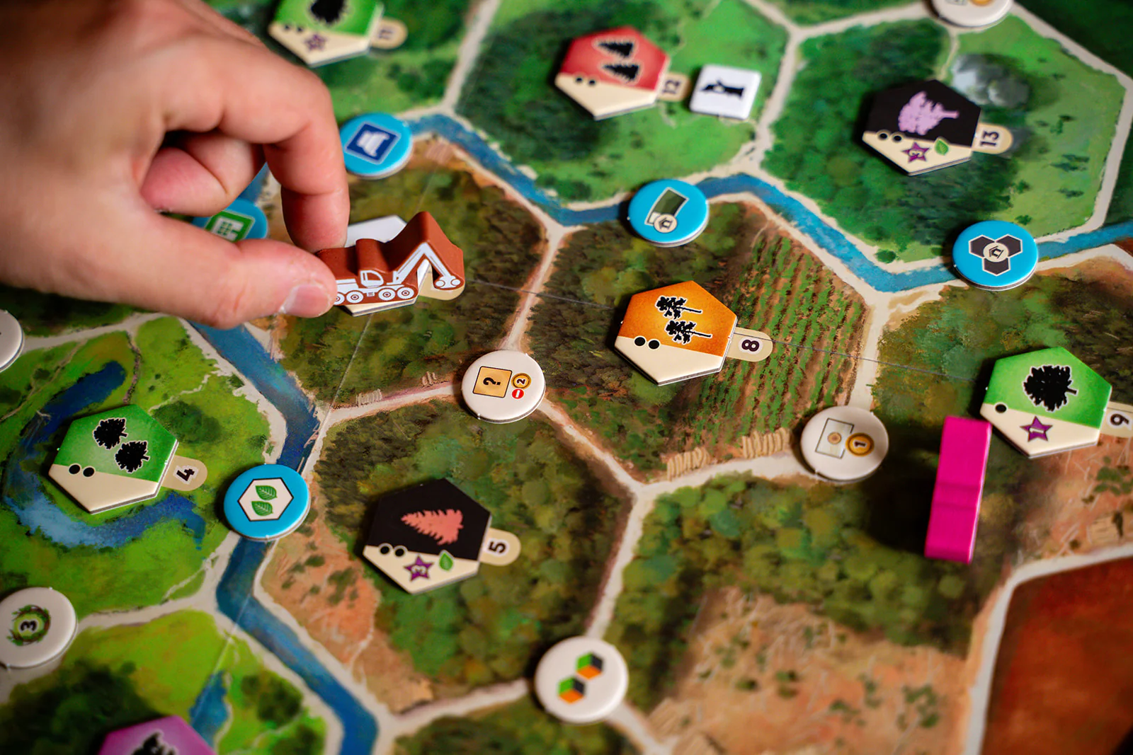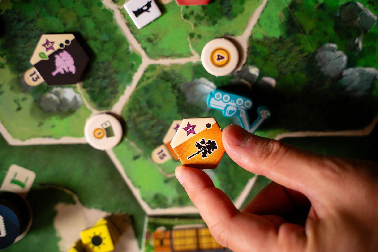 Spelers moeten hun actiepunten zorgvuldig verdelen tussen beide werkers om duurzame beslissingen te nemen, hun infrastructuur uit te breiden en het bos te laten floreren — terwijl ze tegelijk aan de marktvraag blijven voldoen.