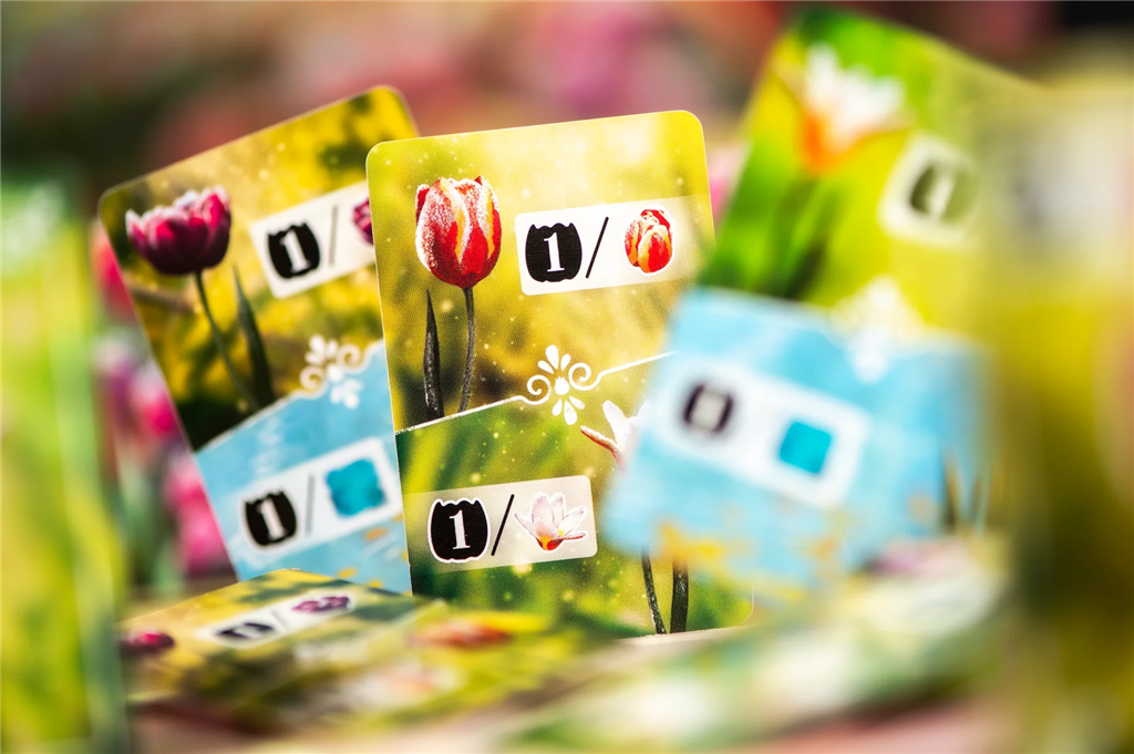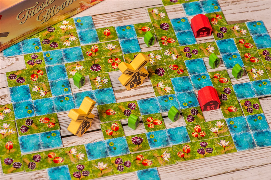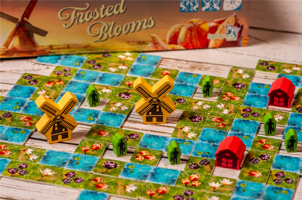 Een zachte vorst hangt nog steeds over het Nederlandse platteland terwijl de eerste tulpen richting de lentezon rijzen. In Frosted Blooms, ontworpen door Bruno Cathala & Ludovic Maublanc, strijden spelers om de meest harmonieuze en waardevolle tulpen tuin te cultiveren in tien beurten.