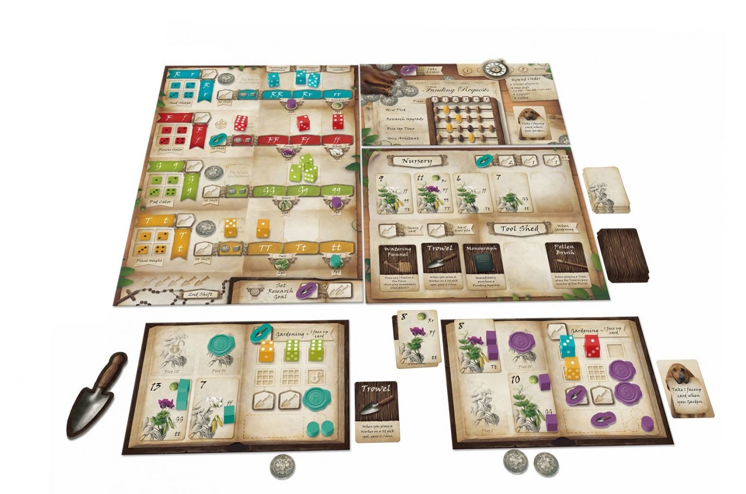 Door de genen van deze ouderplanten te veranderen, kunnen spelers de kans verhogen dat de gewenste eigenschappen gedobbeld worden. Dobbelstenen inzetten om erwtenplantkaarten voltooien is de belangrijkste manier om punten te scoren in dit spel.
