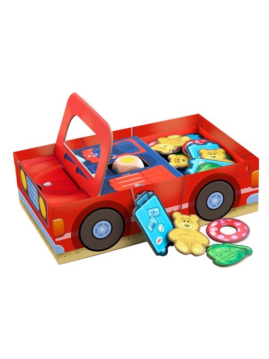 Winnie de Wasbeer gaat op vakantie, en kan niet wachten om te vertrekken! Kunnen jullie een handje helpen met de bagage? Dit bijzondere eerste bordspel van HABA is prachtig vormgegeven, wat het speelplezier alleen maar vergroot. Het speelbord bouw je op in de doos, en heeft het uiterlijk van de mooie rode auto van Winnie. In het midden van de auto zit een simpel, maar superleuk systeem om een dobbelsteen te draaien. Het spel kun je op 2 manieren spelen. In de eerste variant krijgt iedereen 1 stuk bagage in elke kleur. De speler die aan de beurt is draait de dobbelsteen, en als je bagage hebt in de kleur op de dobbelsteen, mag je die in Winnies kofferbak leggen. De beurt geef je vervolgens door, door de auto naar de volgende speler te 'rijden'. De speler die als eerste alle bagage kwijt is, is de winnaar. In de tweede variant stop je alle bagage in de auto. Je mag een stuk bagage pakken in de kleur die je rolt, en geeft daarna de beurt door. De speler die aan het eind de meeste bagage heeft, die wint.