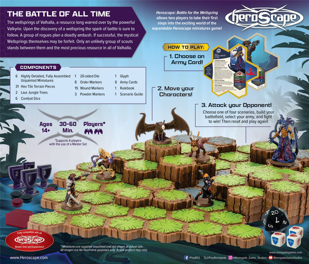 Heroscape: Battle for the Wellspring is het perfecte instappunt voor spelers die nieuw zijn in de wereld van Heroscape-miniaturen. Deze Battle Box introduceert zes zeer gedetailleerde miniaturen, waaronder drie piraten, een nobele tovenaar en twee bekenden. Naast deze nieuwe figuren bevat de set vier nieuwe scenario's, een nieuw terreintegel (Bronwater) en 31 vergrendelbare hexagontegels voor meeslepende slagvelden. Deze uitbreiding is volledig compatibel met zowel eerdere als toekomstige Heroscape-releases.