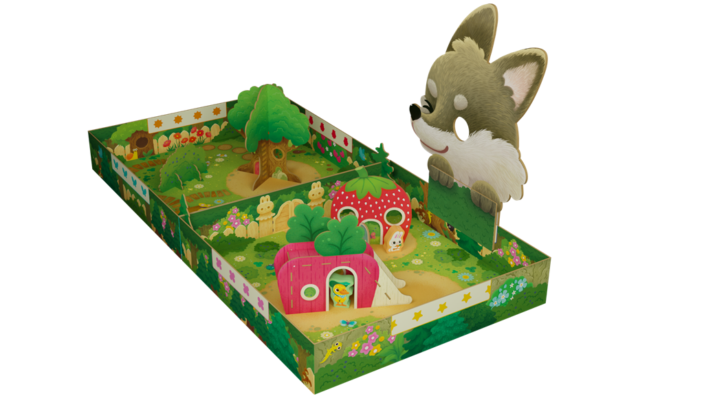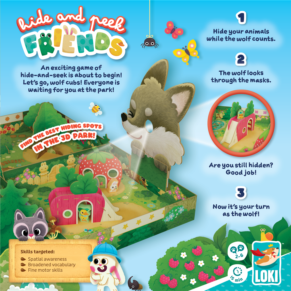 Verberg je dieren terwijl de wolf telt. De wolf kijkt door de maskers. Ben je nog steeds verborgen? Goed gedaan!
