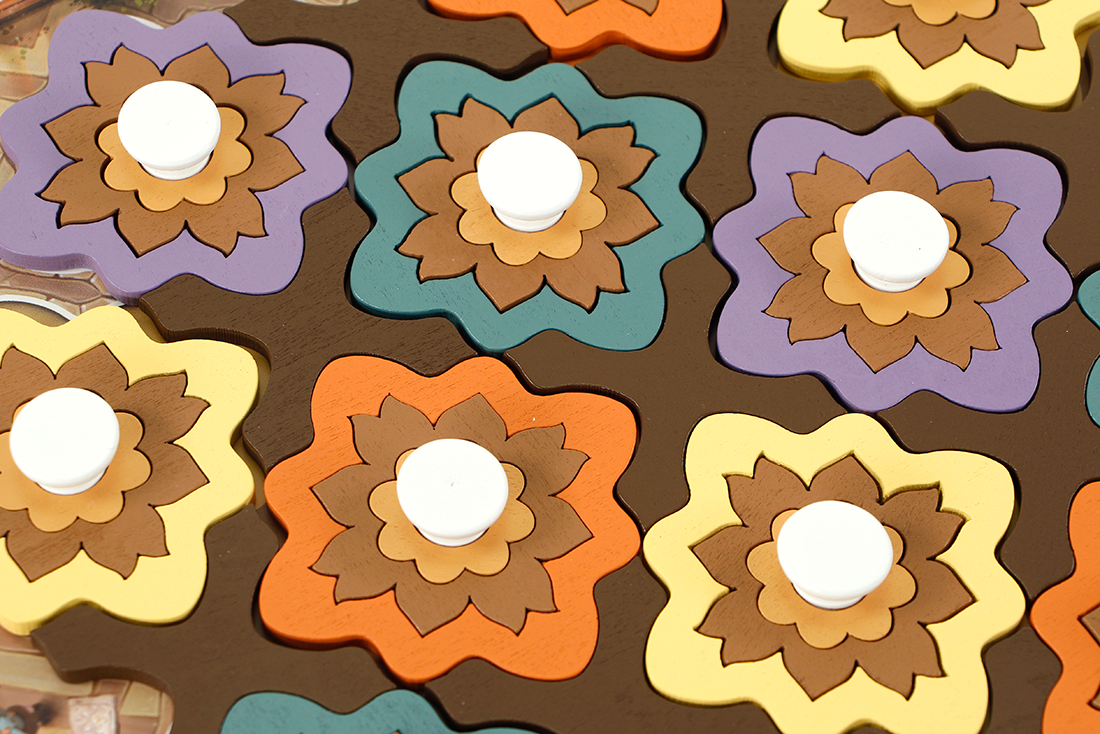 ntarsia is een bouw- en planningsspel voor mensen die het leuk vinden om in een ronde veel te doen en het belangrijk vinden dat een spel er mooi uitziet. Met de houten onderdelen bouw je daadwerkelijk versieringen op je tableau, waardoor het resultaat er Lees meer