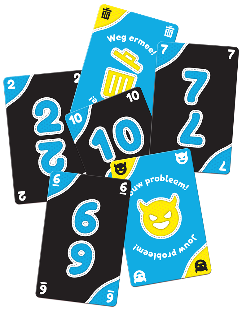 Om te voorkomen dat jij dit wordt, moet je zorgen dat je niet als laatste nog kaarten voor je hebt liggen. Tijdens je beurt kan je kaarten wegspelen, maar lukt dit niet, dan moet je de Lees meer