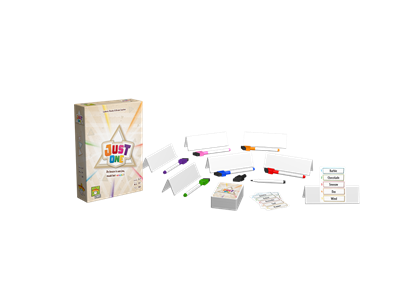 Just One is een coöperatief gezelschapsspel waarin jullie allemaal samen spelen om de hoogste score te behalen. Laat een van de spelers een woord raden door stiekem een aanwijzing op je driehoekige prisma te schrijven, zonder jou te raadplegen. Wees origineel, want alle identieke aanwijzingen worden onmiddellijk gewist.