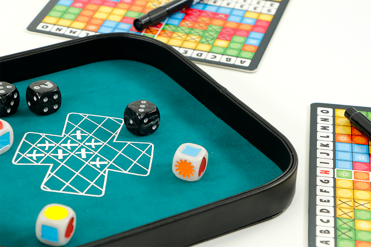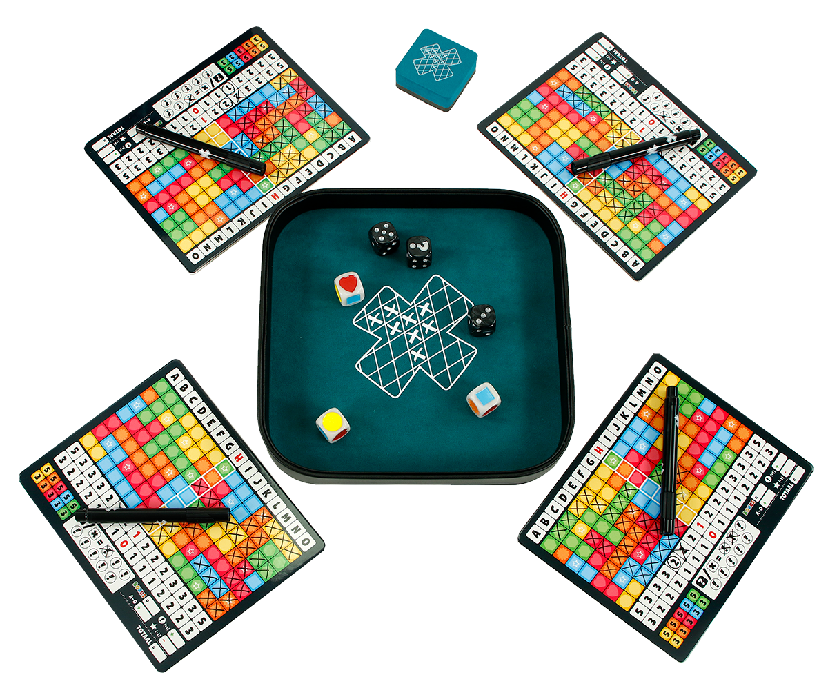 Het geniale dobbelspel met verslavingsrisico in een luxe uitgave. Met dobbelbak, uitwisbare tableaus en een wisser, waardoor je geen scoreblokken nodig hebt.