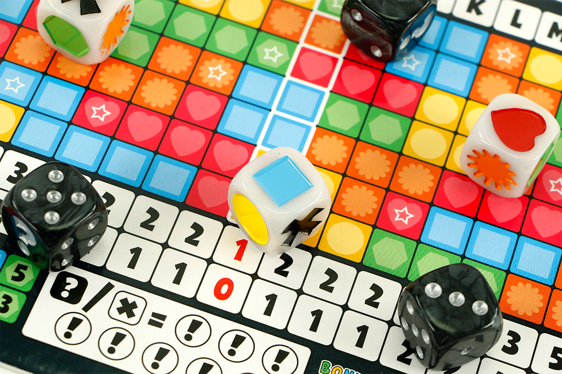 • Met onder andere een dobbelbak, uitwisbare tableaus en symbooltjes op de dobbelstenen voor kleurenblinden