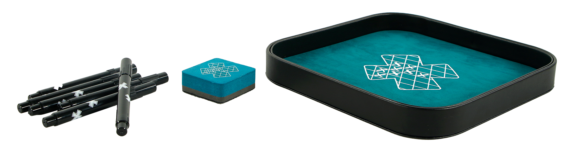 - 4 uitwisbare (dubbelzijdige) spelersborden