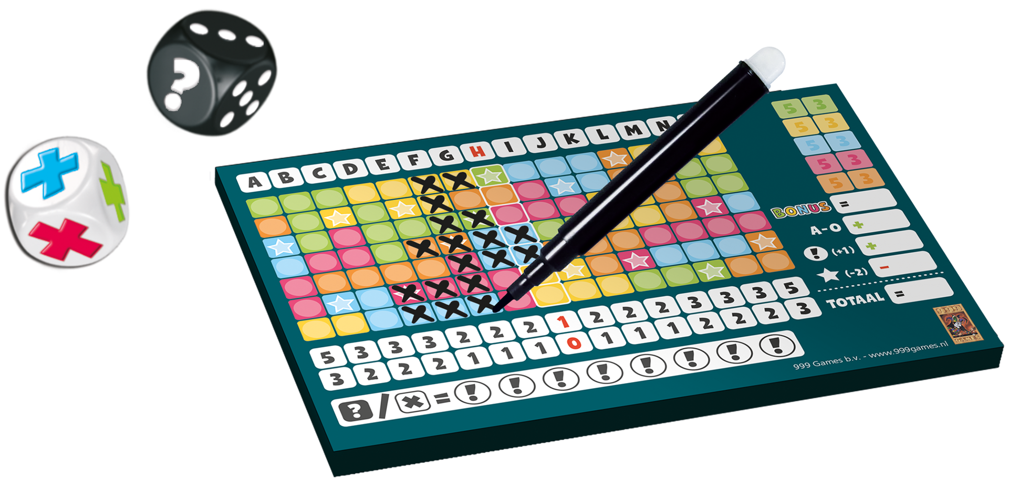 Dobbel- en puzzelspel voor het hele gezin. Kies steeds 2 dobbelstenen en kruis de bijbehorende vakjes op je speelveld aan. Het vullen van kolommen en gebieden van dezelfde kleur leveren een bonus op. Wie behaalt de meeste punten? Lees meer