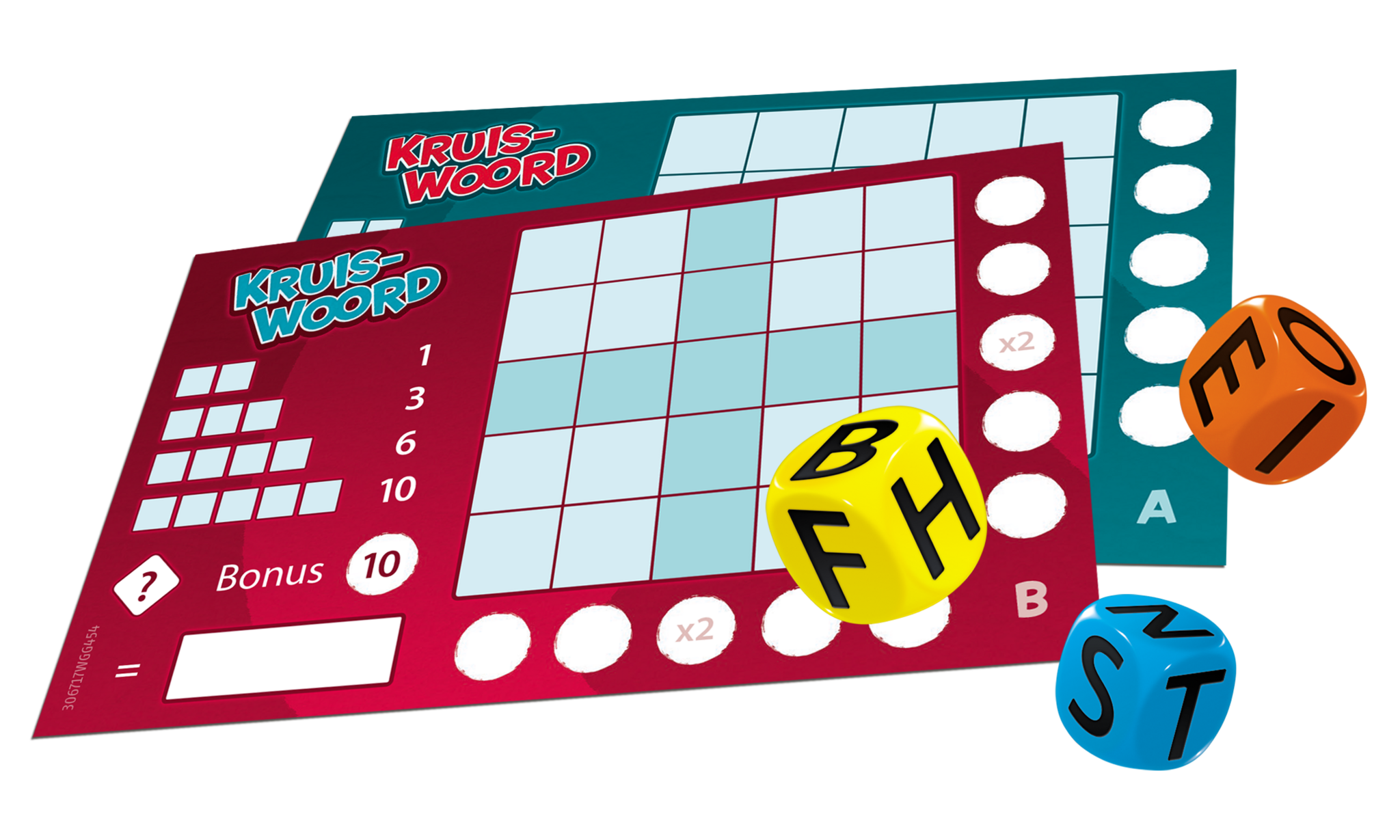 Als je van kruiswoordpuzzels houdt, zul je Kruiswoord geweldig vinden. Iedereen speelt met dezelfde letters, maar je bepaalt zelf waar je ze op je scoreblad invult. 1 van jullie gooit de dobbelstenen, maar iedereen noteert de letters.