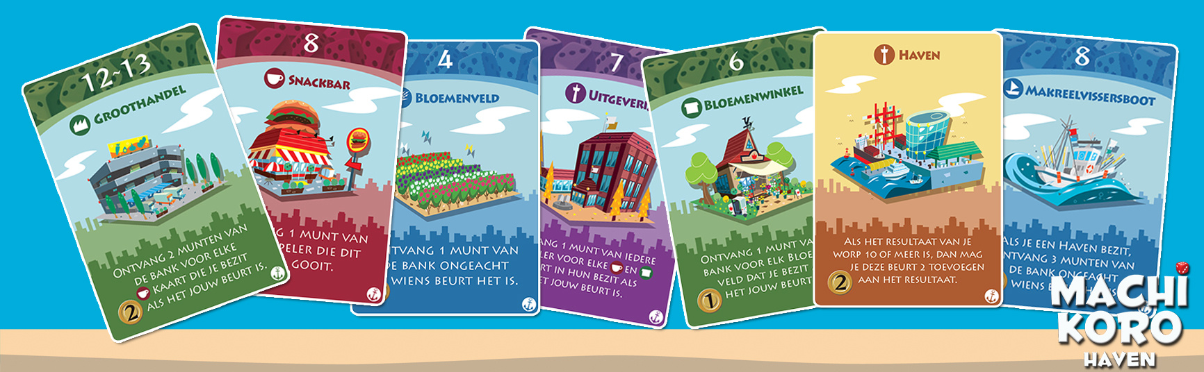 Machi Koro: Haven voegt nog meer speelplezier toe aan het spel waar iedereen het over heeft! Nog meer plezier met dit spel, hoe kan dat? Nou, misschien kunnen tien nieuwe gebouwen, een nieuw startgebouw en twee nieuwe bezienswaardigheden hierbij helpen?