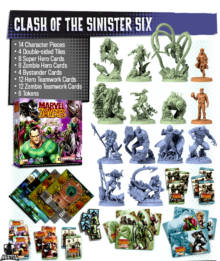 De uitbreiding Marvel Zombies: A Zombicide Game – Clash of the Sinister Six biedt spelers meer speelstukken en tegels die ze kunnen gebruiken in hun games van Marvel Zombies. Deze uitbreiding introduceert de Team vs Team-modus. Spelers staan tegenover de ondode kloof, in de hoop New York te redden of te verslinden.