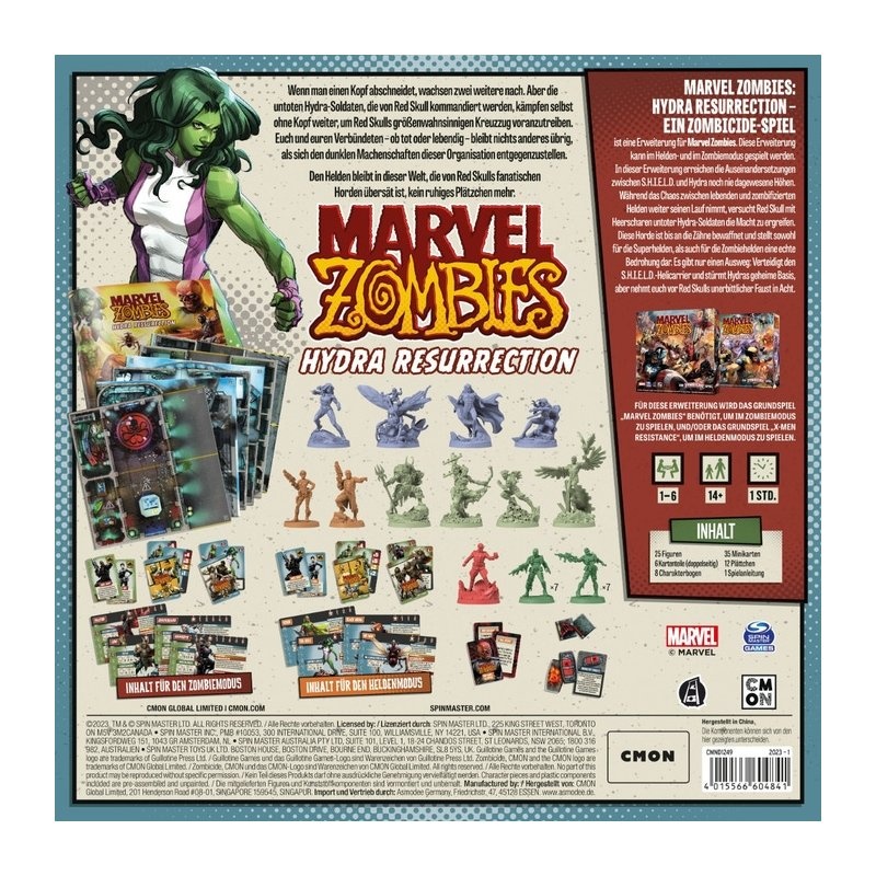 Marvel Zombies: A Zombicide Game – Hydra Resurrection is een uitbreiding voor Marvel Zombies. Spelers nemen het op tegen Red Skull en zijn legioenen Hydra-zombietroopers. Deze unieke vijand kan aan elk scenario in Marvel Zombies worden toegevoegd, waardoor de zombie-aanval nog gevaarlijker wordt.