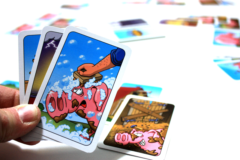 In ‘Moddervarkens’ probeert iedere speler zijn varkens te laten spelen