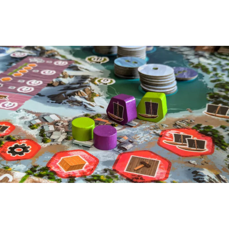 Gedurende drie rondes draften spelers dobbelstenen om gebouwen in hun nederzetting te activeren. Dit levert grondstoffen op en biedt acties zoals het uitsturen van je vissersboot, het ontwikkelen van je technologieën, het voltooien van handelscontracten of het bouwen van nieuwe gebouwen. Elk spelersbord toont een raster. Wanneer je een dobbelsteen draft, activeer je alle gebouwen in de rij of kolom die overeenkomt met die dobbelsteen. Door gebouwen te bouwen in je nederzetting kun je met elke dobbelsteen meer gebouwen activeren.
