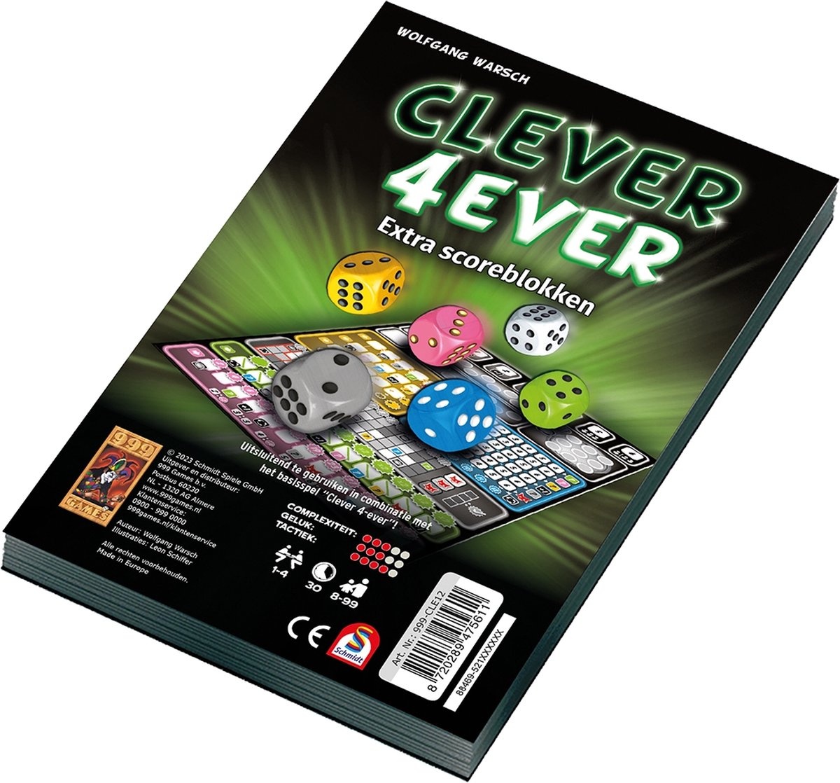 Ben je door je scorebladen van Clever 4Ever heen? Geen nood. Met deze twee extra scoreblokken kun je voorlopig verder dobbelen!