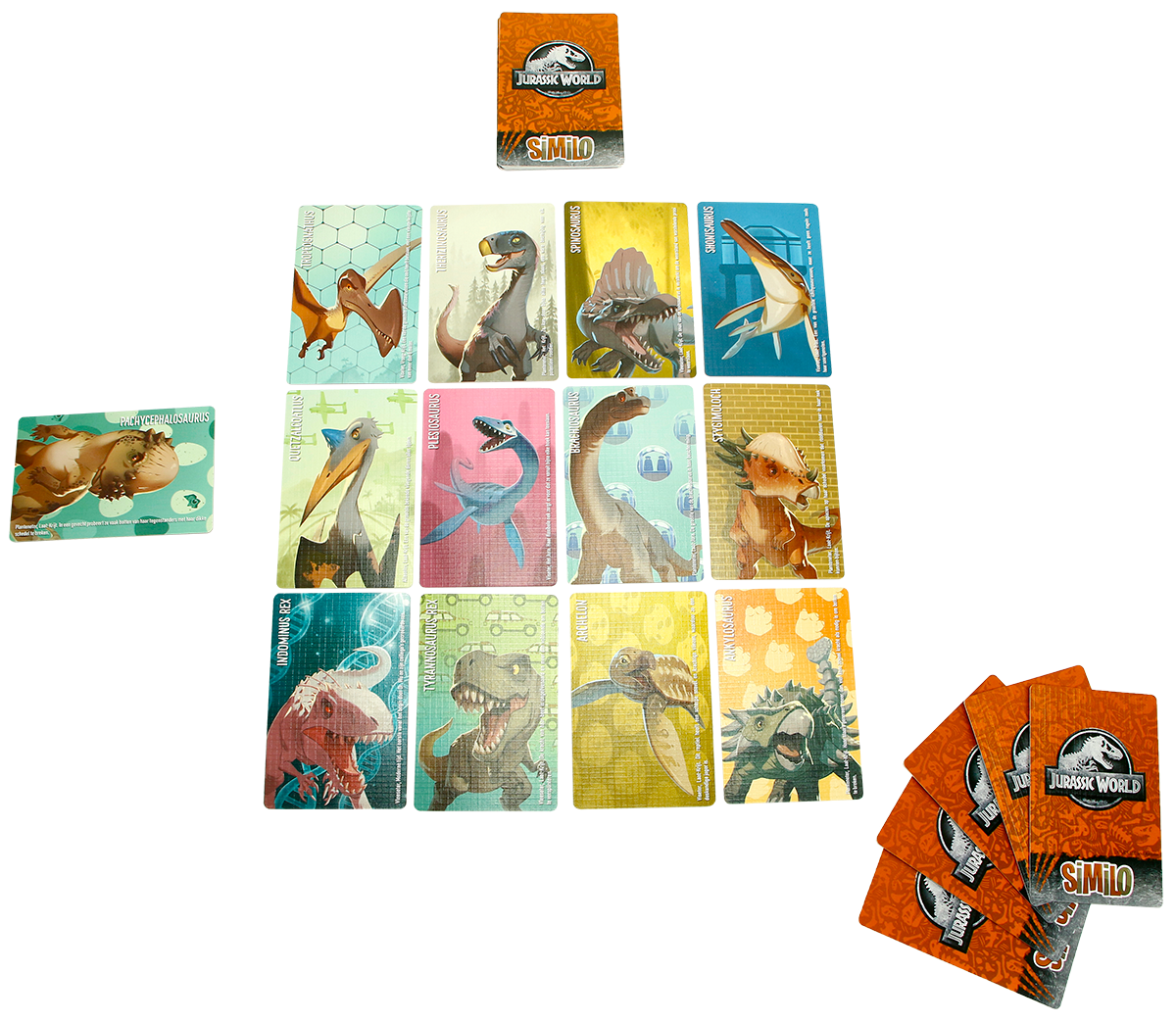 In deze editie van Similo moet je gezamenlijk uit 12 dino’s de juiste vinden. Per beurt geeft de spelleider zonder te praten een hint met een nieuwe kaart. Heeft de dino die je zoekt een vergelijkbare vorm of dezelfde kleur? Of juist niet? Alleen als je de hints snapt, kun je Similo winnen.
