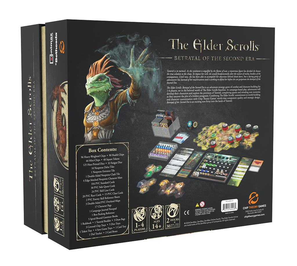 The Elder Scrolls: Verraad van het Tweede Tijdperk is een avonturenstrategiespel met gevechten en karakterontwikkeling voor 1-4 spelers, dat zich afspeelt in de geliefde wereld van The Elder Scrolls-franchise. In campagnegebaseerd spel zullen avonturiers hun personages ontwikkelen en de provincies van Tamriel verkennen, quests voltooien en nieuwe mysteries onthullen terwijl ze het complot van een verborgen antogonist ontdekken.