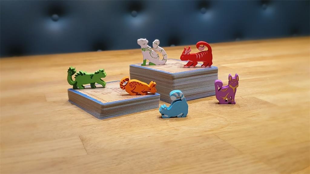 Je zult ook middelen moeten beheren terwijl je het eiland verkent (card drafting), katten te redden, schatten te vinden, vriendschap te sluiten met Oshax en oude lessen te bestuderen.