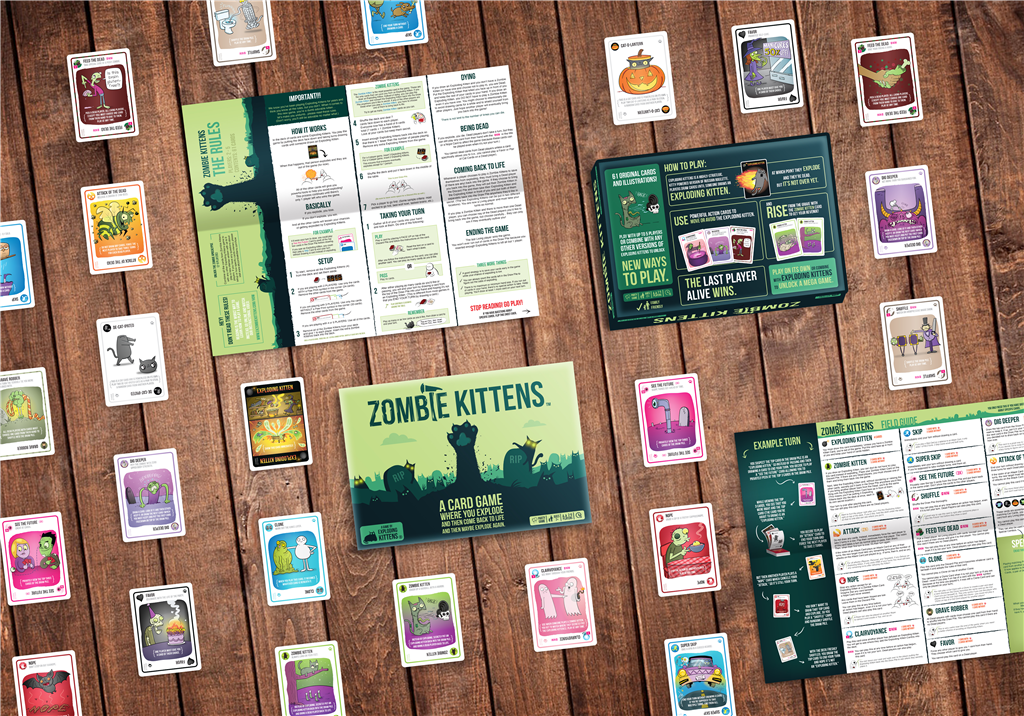 Gebruik actiekaarten om de Exploding Kitten te verplaatsen of te ontwijken en herrijs uit het graf dankzij de Zombie Kitten om wraak te nemen op je tegenstanders!